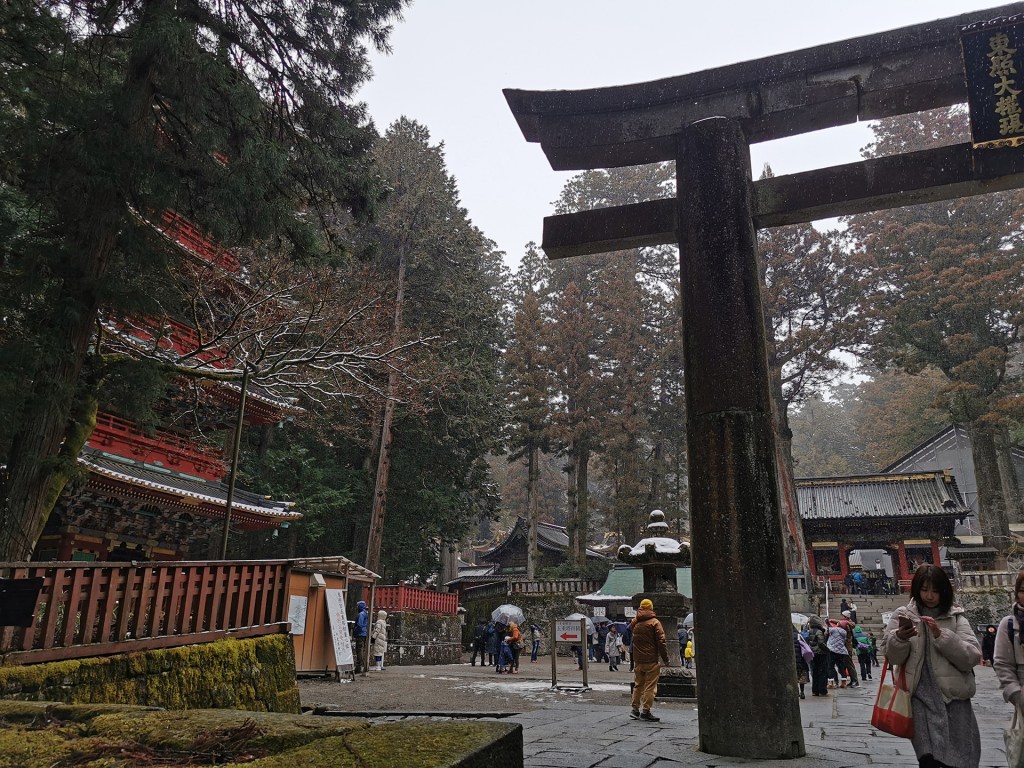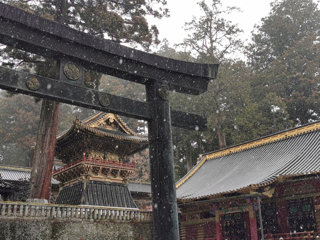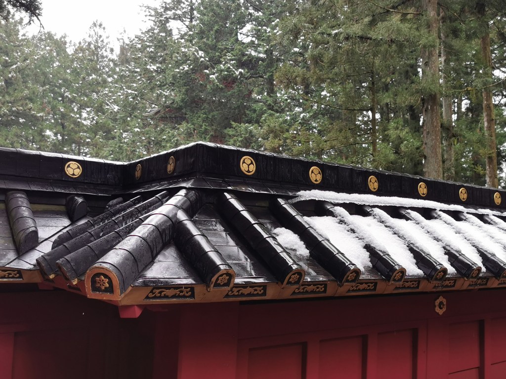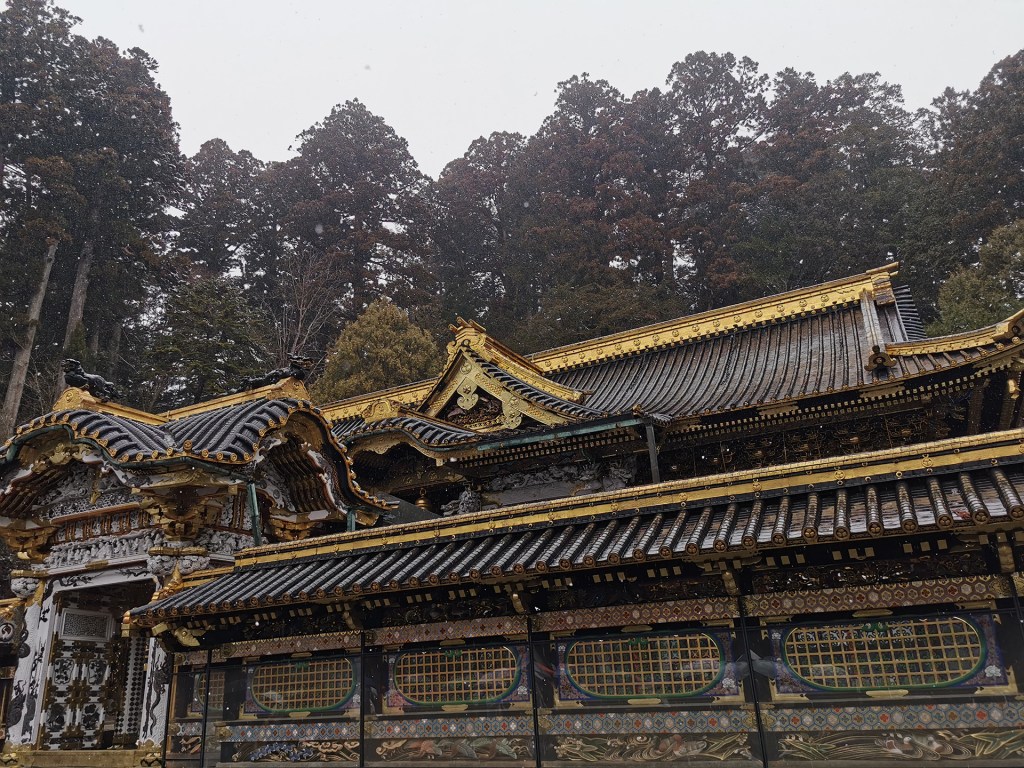 Malgré un temps froid et incertain, il y a du monde à l’entrée du Tosho-gu. Le site, isolé par d’immenses pins, ne se dévoile qu’au dernier moment. Lorsque nous y arrivons vers midi, la neige commence à tomber. On peut dire au sens propre que c’est un cadeau du ciel. Les flocons baignent les lieux d’une ambiance particulière. Pendant quelques heures, nous allons nous en mettre plein les yeux. Je ne suis pas très sûr qu’il faille écrire des commentaires sous ces photos…