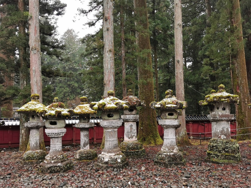 En quittant le Tosho-gu, nous passons devant l’entrée du Taiyu-in. Il s’agit du mausolée qui accueille les restes de Tokugawa Iemitsu, petit fils et grand admirateur de Ieyasu qui a voulu reposer auprès de son aïeul. Contrairement au Tosho-gu, ça ne se bouscule pas au portillon. Cela fait plus de deux heures que nous sommes dehors. La neige tourne à la pluie et nous commençons à avoir froid. Nous hésitons. Ira, ira pas ? On se dit finalement que nous ne reviendrons peut-être jamais ici. On y va. Et c’est une très bonne décision. Lors de notre visite, nous ne croisons qu’une dizaine de personnes. L’endroit s’en trouve pacifié. Les pins forment un écrin dans lequel semble s’être enfoncé le sanctuaire. Les arbres, le monument, nous, la nature comme seul fond sonore. Le temps s’arrête. Entre la forêt et les bâtiments qui n’ont rien à envier au Tosho-gu, le sacré transpire.