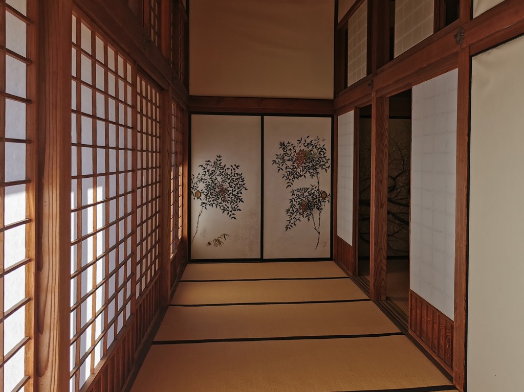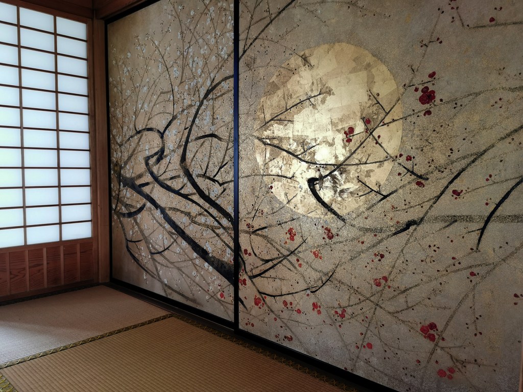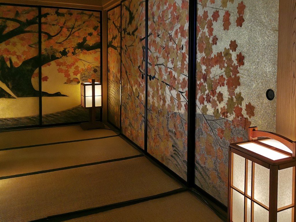 Le pavillon renferme quelques beaux fusuma contemporains de la reconstruction.