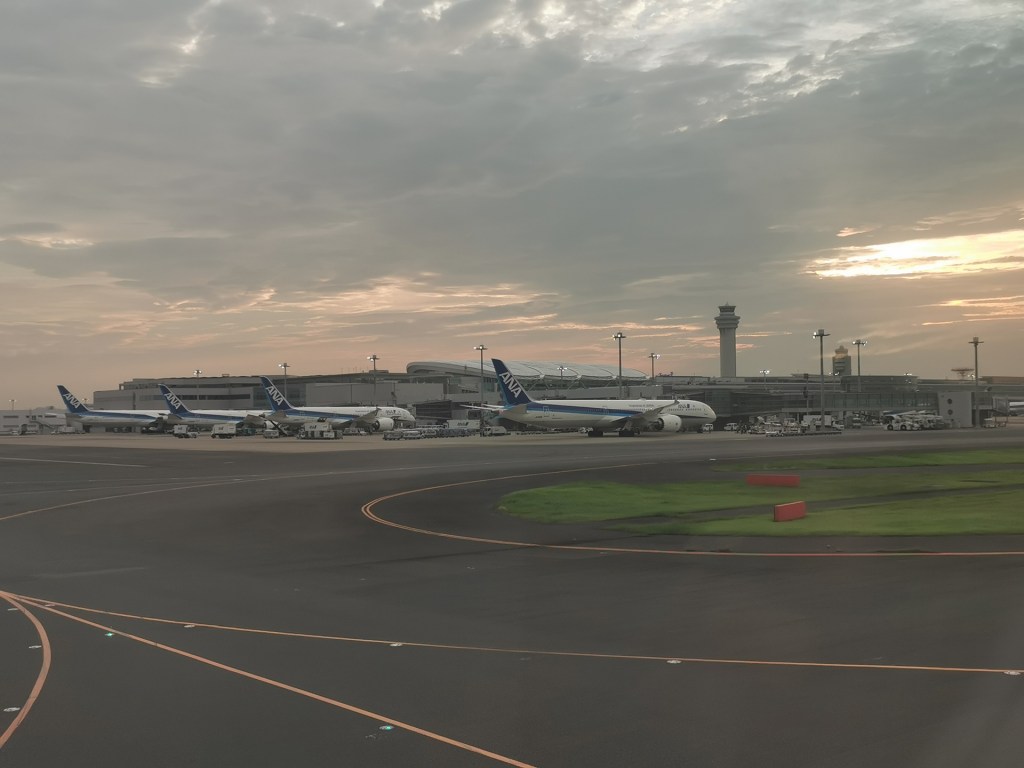 Et nous voici arrivés à l’aéroport de Haneda ou un type amoureux d’une certaine Ana a repeint tous les avions. C’est fou l’amour ! Ça donne des ailes !