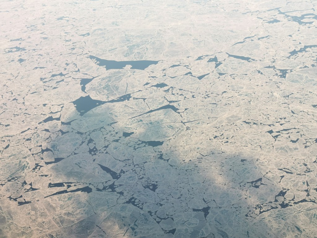 Le lendemain, après une nuit passée à Tokyo, c’est de Haneda que nous repartons. Alors que lors du vol aller, il y a presque un an, nous avions survolé la Turquie, le Moyen-Orient puis la Chine, c’est un tout autre trajet qui nous attend aujourd’hui. Après le décollage, nous prenons un premier repas puis passons un peu de temps à nous demander lesquels des 136 films disponibles nous allons regarder (pour moi ce sera Dune I et Dune II). On se demande si on essaye de dormir maintenant. On regarde le début du film, puis on le regarde à nouveau parce qu’on s’est endormi, et avant que nous nous en apercevions, nous voici rendu sur les traces du capitaine Hatteras, héros de Jules Verne explorateur du pôle Nord.