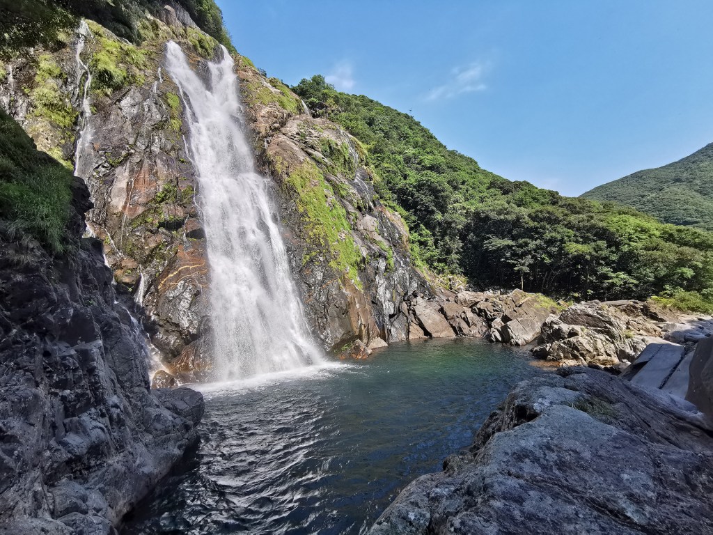 Après la pause déjeuner, nous nous rendons à Ohko no taki, la cascade la plus haute de l’île avec ses 80 mètres de haut.