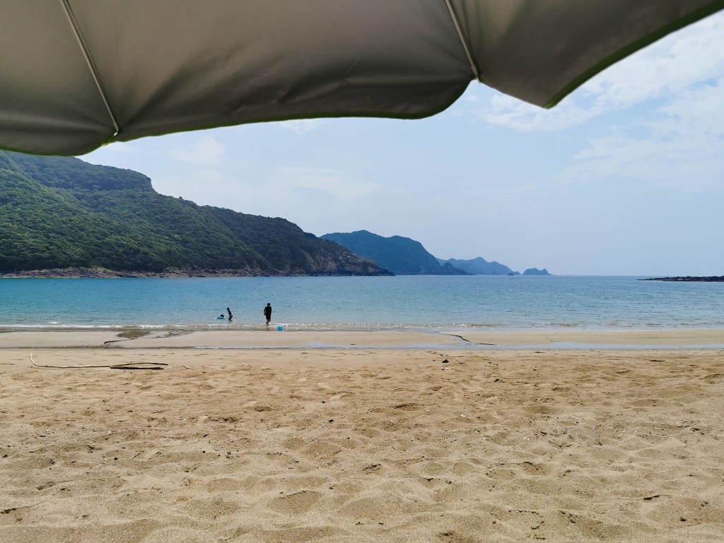 Au mois d’août, nous avons décidé de nous jeter à l’eau. Nous nous sommes rendus à la plage de Maruki à Bonotsu. C’est dans cette crique, ou une voisine, que Saint François Xavier a posé le pied pour répandre le christianisme au Japon en 1549 (ça n’a pas super marché).