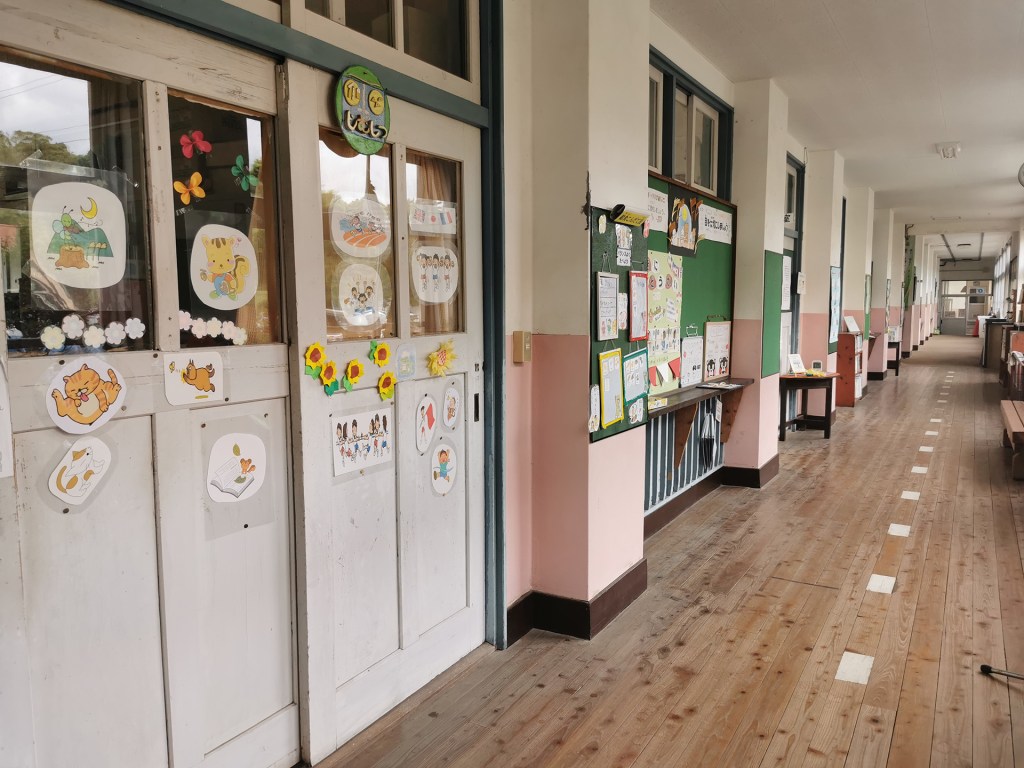 L’école élémentaire locale compte une cinquantaine d’élèves (pour six niveaux à l’école primaire au Japon, si je ne me trompe pas). Lors de la rentrée scolaire 2024 (qui a lieu en avril) il y a eu trois nouvelles inscriptions ici. En à peine trente ans, les effectifs ont été divisés par deux. Autant dire que le bâtiment que vous voyez sur la photo ci-dessus est surdimensionné.