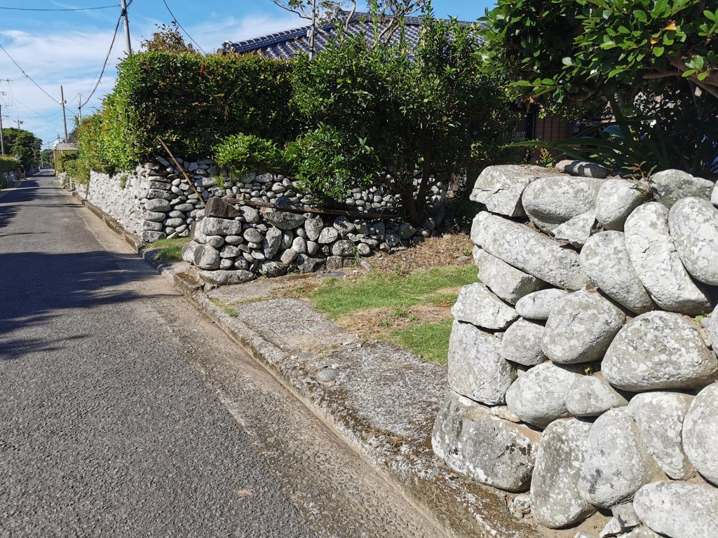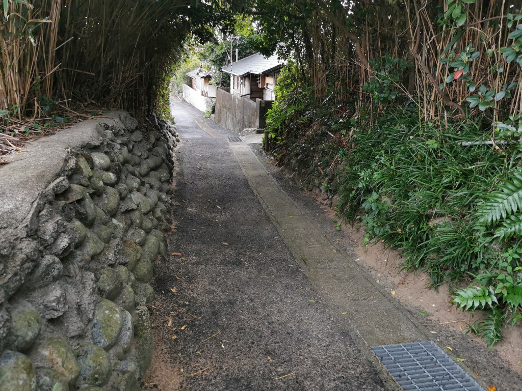 Teuchi se structure autour d’une rue ancienne, bordée de murets de pierres sèches surmontés de haies. Ces murets sont caractéristiques des « quartiers de samurai » (vous vous souvenez peut-être des photos de la ville de Chiran dont j’ai déjà parlé à deux reprises dans de précédents articles).