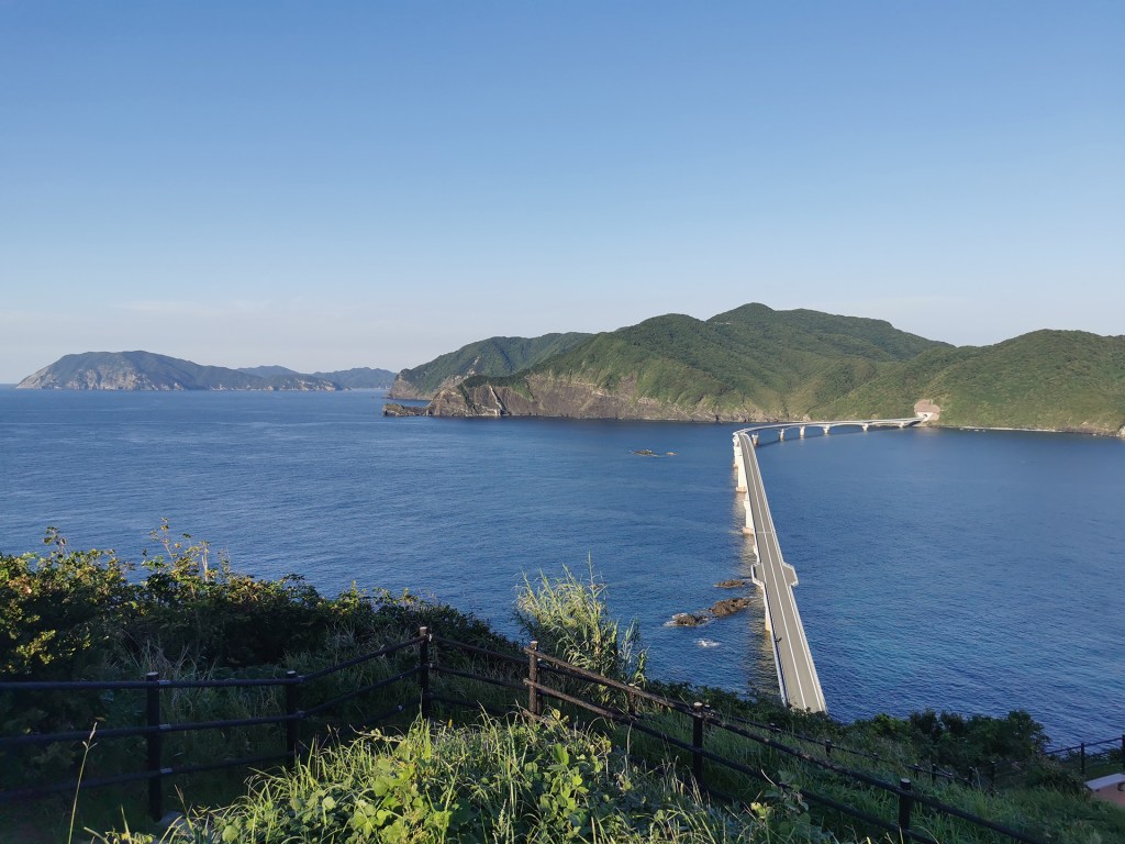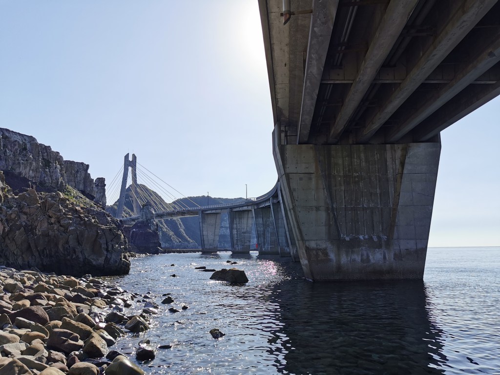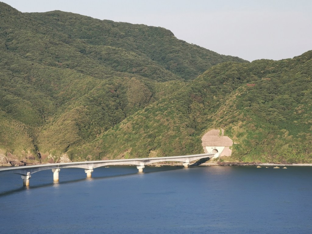 Les différentes îles sont reliées entre elles par des ponts. Le plus long d’entre eux (1533 m) a été ouvert en 2020. L’ouvrage jaillit littéralement de la falaise de Nakakoshiki (la grande île du centre) pour plonger à l’intérieur de Shimokoshikijima (la grande île du sud). En effet, non contents de créer des ponts entre les îles, les maîtres d’œuvre ont contourné le problème du relief… sans le contourner en fait. Pourquoi faire un détour quand on peut passer à travers ? Sept tunnels permettent ainsi de tracer des lignes droites entre les villages de l’archipel, le plus long mesurant 1,7 km.