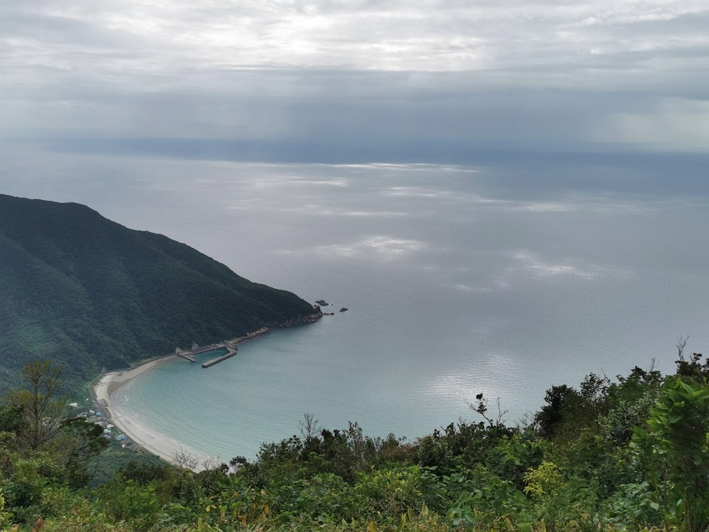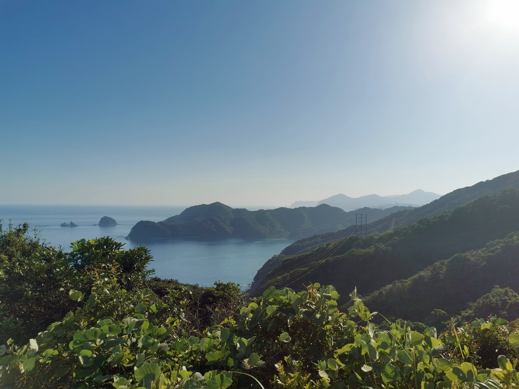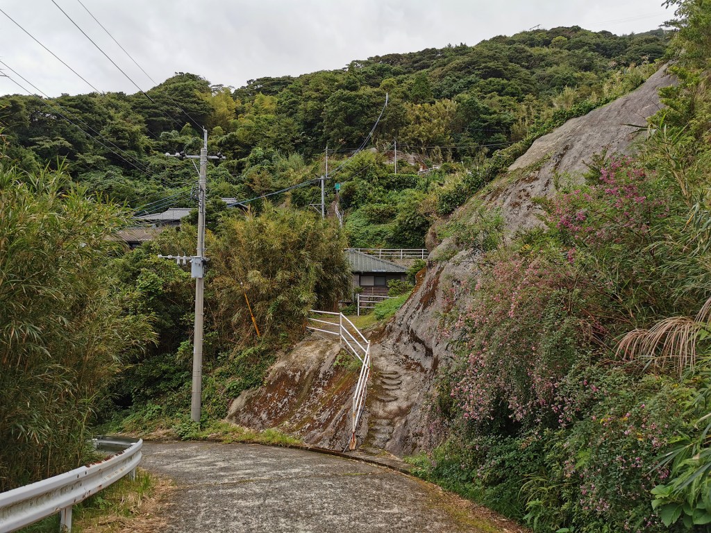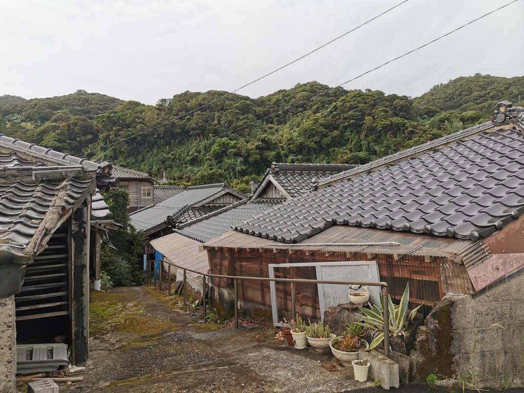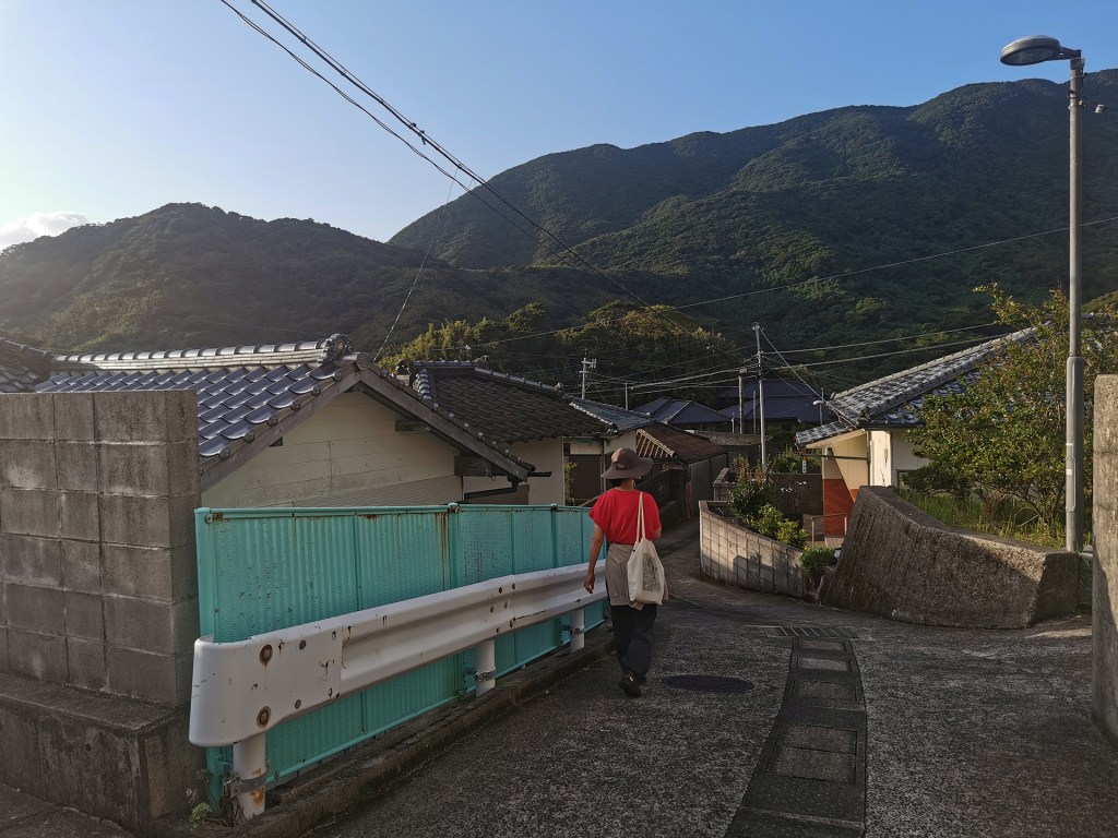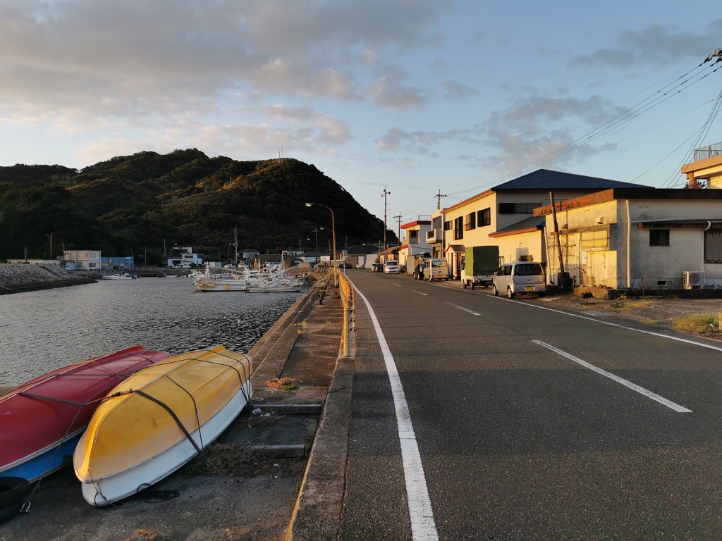 Et nous passons l’après-midi à descendre vers le sud tranquillement là où une heure suffit normalement. Les îles sont assez escarpées, surtout Shimokoshikijima, celle du sud. Cette dernière, longue de 21 km et large de 5,5 km maximum, possède le point culminant de l’archipel à 603 m de haut, le mont Odake. Notre logement se situe à Teuchi (prononcez « té-ou-tchi » et non pas « teushi », c’est pas pareil), tout à fait au sud de l’île du sud. Mais vous savez déjà qu’on aime aller au sud du sud.