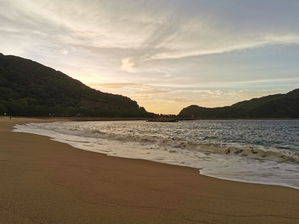 Et puis, surtout à Teuchi, tout au sud de l’île du sud, il y a le bruit des vagues sur cette belle plage. Tout le cadre naturel pour faire une station balnéaire mais sans les infrastructures humaines qui rompent la quiétude de l’endroit. En bon européen moyen, je reste surpris par l’absence de deux centaines de touristes (au moins), accompagnés d’autant de parasols qui devraient s’y trouver si… si on était pas au Japon.
