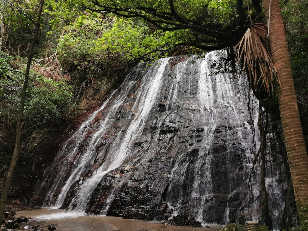 Avant de quitter l’île, et retourner chez nous sur une île plus grande, nous allons voir la cascade de Seo Kannon Mitaki. Cette chute d’eau haute de 55 mètres que nous visitons sous la pluie a la particularité de s’étager en trois cascades successives que nous découvrons en commençant par le bas.