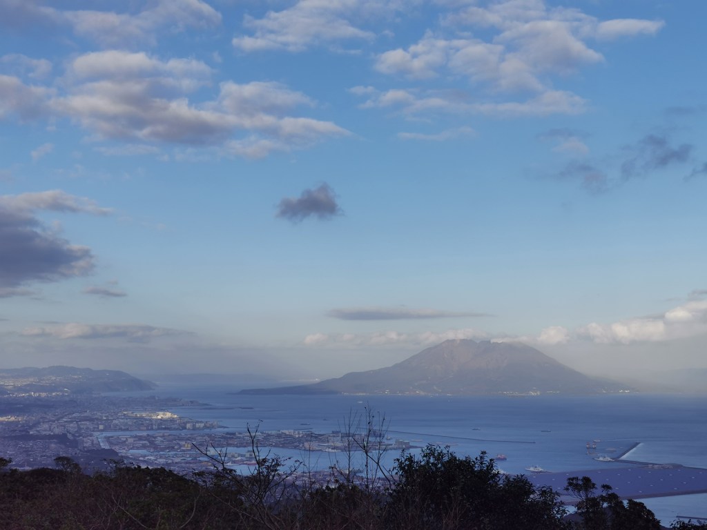 En rentrant, une erreur de trajet nous a amené à un point de vue sur la ville de Kagoshima et le Sakurajima.
