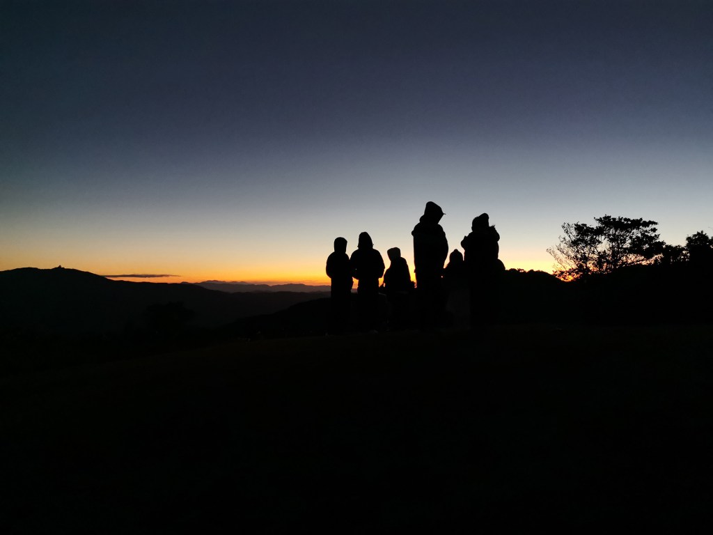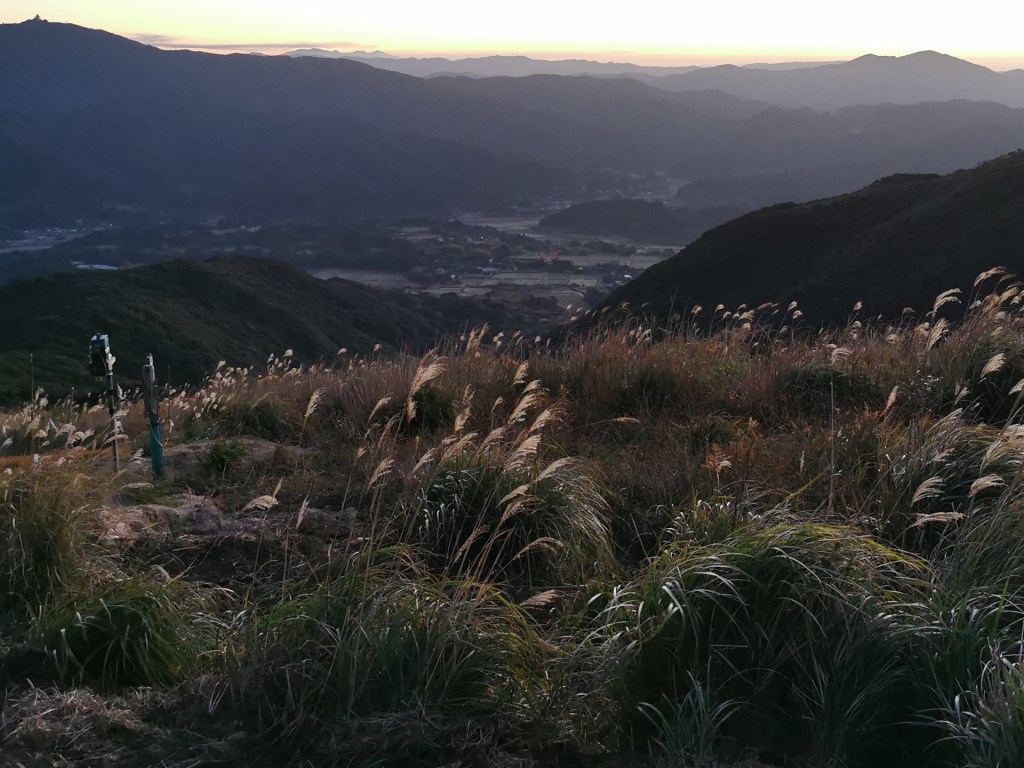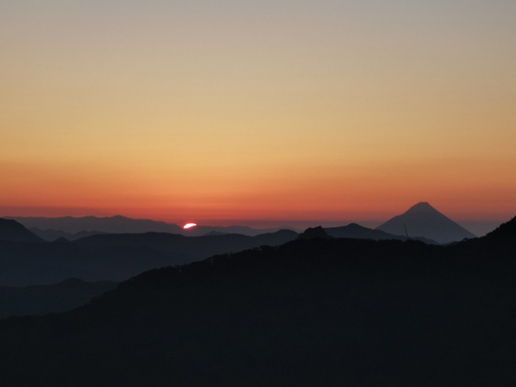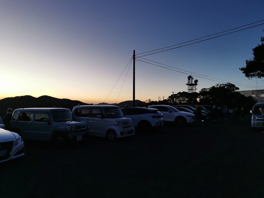 Et tôt, c’est tôt. Levé du corps à 5h30. Une petite collation rapide et je m’élance dans le noir. Cette année encore, je monte à Kamegaoka à pied pour aller admirer le premier soleil. Mais cette fois-ci, Yoko ne vient pas avec moi. Elle me retrouvera là-haut avec son père qu’elle aura conduit sur place. C’est donc seul que je prends la route… et sans lumière. D’une part parce que c’est bien de marcher sans lumière la nuit avec les étoiles et la lune pour s’éclairer, et d’autre part parce que j’ai oublié de prendre une lampe. Et puis en fait il n’y a pas de lune et finalement, les étoiles c’est à peine assez pour éclairer mon chemin, surtout que la route passe largement dans la forêt. J’ai vraiment marché dans le noir au point de ne pas voir mes pieds (quelle idée d’avoir des godasses noires !). Et je dois avouer que j’ai dû rassembler mon courage plusieurs fois car il avait tendance à s’éparpiller à l’approche des zones les plus sombres. Continuer à avancer de manière automatique, en essayant de ralentir le moins possible. Un pas après l’autre, sans se retourner bien sûr. Et en se disant que le sanglier qu’on entend crapahuter dans le sous-bois ne viendra pas s’enquérir de l’identité de l’intrus qui emprunte la route à une heure où les humains sont censés dormir. Heureusement que je connais bien le chemin, je l’ai souvent empruntée à pied et en voiture.