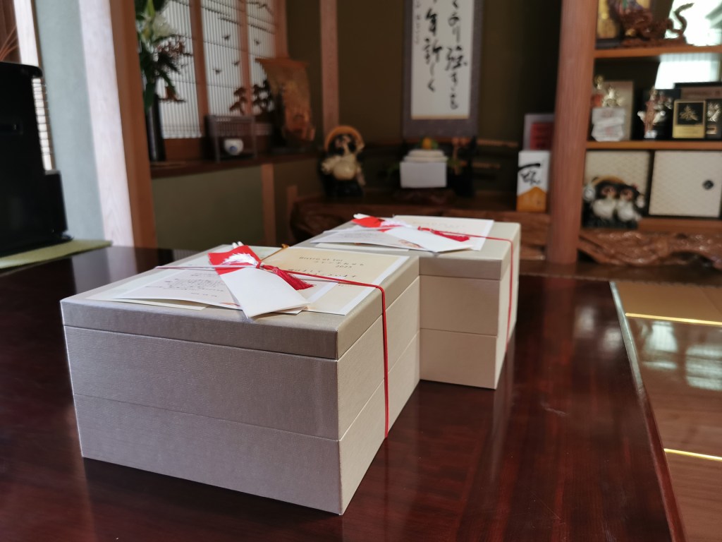 Le cousin qui est chef à Mito (dont je vous ai parlé ici) nous a fait parvenir de mystérieuses boîtes. Que contiennent-elles ?