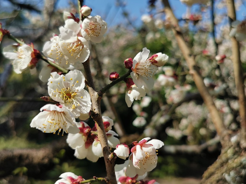 La semaine dernière, pendant que Yoko préparait puis donnait ses cours en visio, je me suis échappé pour une promenade bucolique. Je ne vais pas rentrer dans les détails de cette balade maintenant, il y aurait trop à dire, mais elle m’a donné quelques occasions d’admirer les pruniers en fleurs.