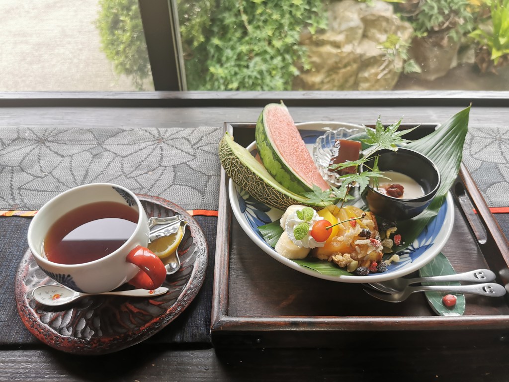 Avant de rejoindre Goryo, nous faisons une petite halte rafraîchissante dans un salon de thé, avec quelques fruits pour nous redonner du jus !